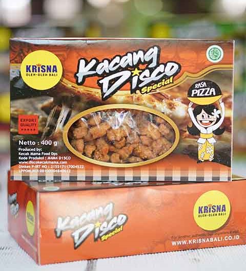 Kacang Disco adalah salah satu oleh-oleh khas Bali yang sangat populer di kalangan wisatawan. Kacang Disco adalah sejenis kacang goreng yang memiliki rasa gurih dan renyah. Keunikan dari Kacang Disco ini terletak pada bumbu rempah yang digunakan, seperti bawang putih, cabai, kemiri, dan berbagai rempah pilihan lainnya yang memberikan cita rasa yang khas dan menggugah selera. Kacang Disco biasanya dijual dalam kemasan yang menarik dengan desain yang cerah dan berwarna-warni sehingga cocok sebagai oleh-oleh atau souvenir bagi para pengunjung yang ingin membawa sedikit kepingan Bali pulang ke rumah mereka. Selain itu, Kacang Disco juga menjadi favorit para pecinta kudapan yang mencari camilan yang nikmat dan dapat dinikmati kapan saja. Dengan kelezatan dan keunikan rasanya, tidak heran jika Kacang Disco menjadi salah satu oleh-oleh yang paling dicari oleh wisatawan yang berkunjung ke Bali.