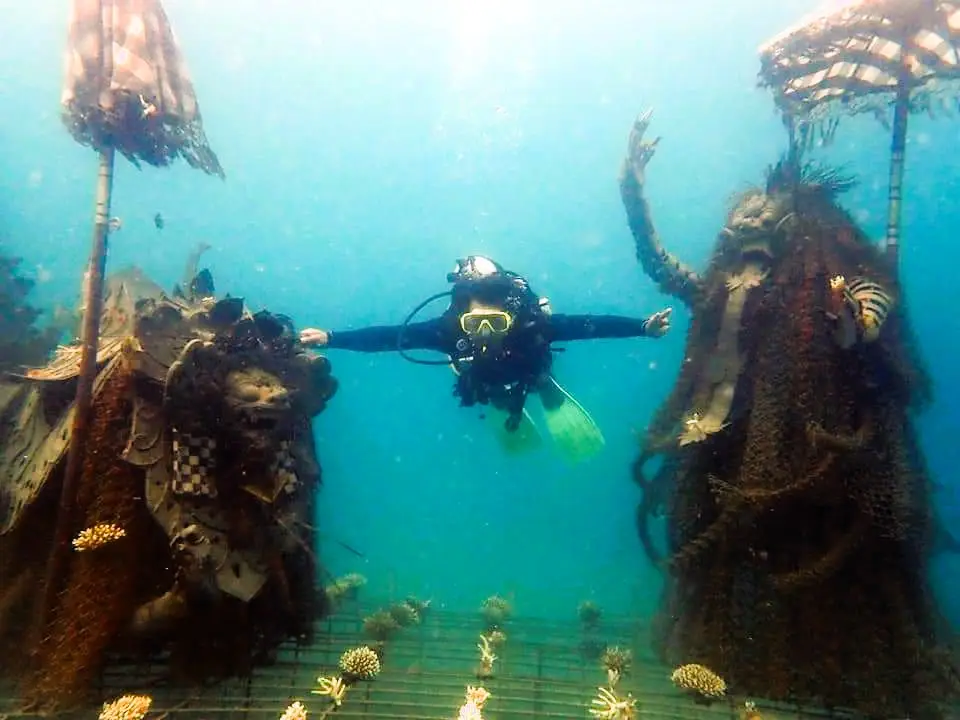 Pesona Patung Barong-Rangda di Bawah Laut Pantai Pemuteran, Gerokgak