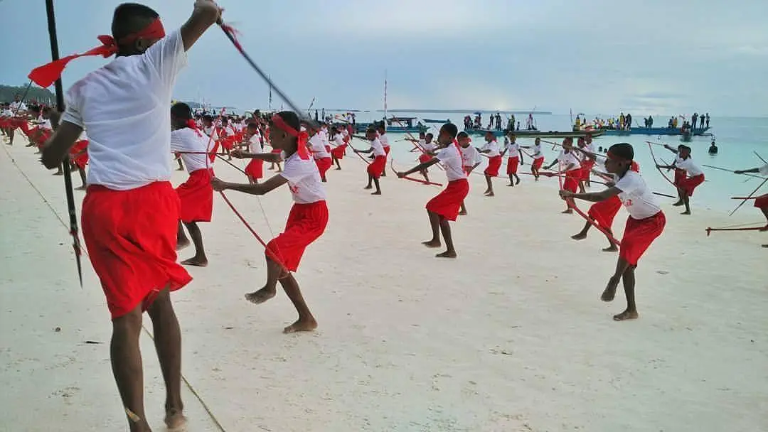 Tarian Panah Pada Acara Puncak Festival Pesona Meti Kei Pantai Ngurbloat Desa Ngilngof – Pulau Kei – Maluku | Instagram ???? @Tjoadebs