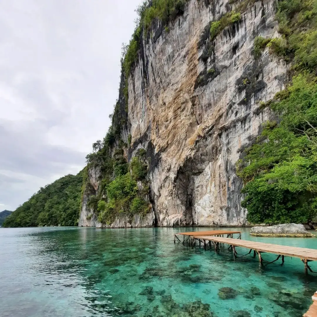 Di bawah dinding tebing yang menjulang tinggi ini, Anda akan menemukan lokasi yang sempurna untuk snorkeling. Selain itu, pengunjung memiliki kesempatan untuk berinteraksi secara langsung dengan penduduk Desa Sawai, atau perkampungan nelayan, yang sebagian besar merupakan rumah terapung di atas laut dengan latar belakang pohon tinggi.
