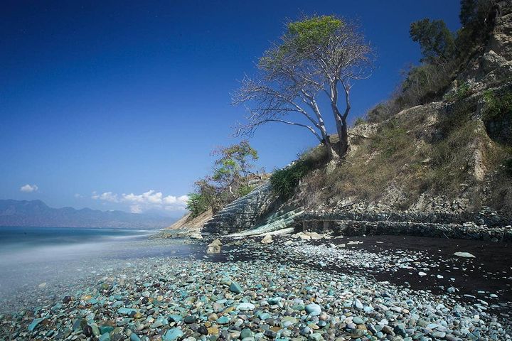 Jika biasanya Anda mengumpulkan kerang saat berada di pantai, di sini Anda bisa mengumpulkan batu-batu berwarna yang sepertinya tak berujung yang dibawa oleh ombak. Menurut penduduk setempat, batu-batu itu selalu ‘terdampar’ di pagi hari, meski sudah dikumpulkan setiap hari oleh penduduk untuk diperdagangkan, batu-batu ini selau ada tersedia.